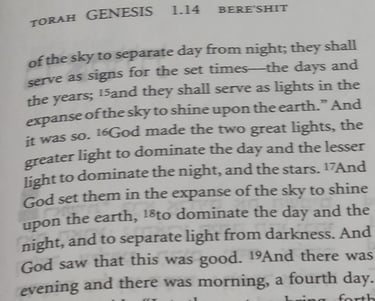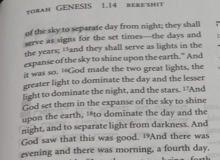 (Genesis 1:14a JPS) God said, "Let there be lights in the expanse