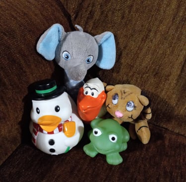 Grandma smiled to herself as she listened to the happy sounds coming from the other room. Coco was really playing nicely with his little sister, Sally, today. A small burst of giggles almost made her laugh, herself. Then her smile faded as some of the words that the children were saying began to make sense to her. "So weird... ugly ears... such a big nose... should just go away..." My goodness, what were those children talking about? She stepped around the corner and saw the toys arranged on the floor. There was one small group of animals looking at a little elephant evidently trying to hide behind a blanket.
