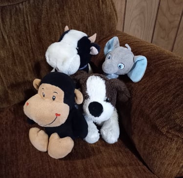 It was one of those mornings (as Grandma would say) when Coco woke up on the wrong side of the bed. He barely made it past breakfast before he was picking on Sally until he had her crying. Grandma quickly stepped in and chided him for being unkind. "Oh Grandma" he exclaimed, "I was only teasing. Sally shouldn't be such a baby!" As Grandma gave Sally a comforting hug Coco headed outside, letting the door slam behind him. Grandpa was ready to drive into town to pick up several supplies from the farm store. Coco quickly climbed into the truck, fastened his seatbelt, and they were on their way. As they were walking into the store, several of Coco's friends from school came running across the parking lot. "Hey farm boy!" one of them called as they dashed past. "Feeling corny today?" "Yeah, look at you," laughed another one "What's a farm boy like you doing in our town?" The group disappeared around the corner as Coco looked after them in shocked disbelief. He had thought they were his friends. Why would they act like that? Grandpa glanced back to make sure Coco was still following him. "Are you okay?" he asked, noticing Coco's shocked expression. Coco was embarrassed that Grandpa had caught him almost crying. "Yeah, I'm okay" he answered with a quick swipe of his sleeve across his eyes. Grandpa didn't say anymore, but he could tell that Coco's feelings had been hurt. When Grandpa had a private moment after lunch, he told Grandma what had happened in town. She mentioned what had happened that morning between Coco and Sally. They agreed to talk to the children after supper, when they all would have time to sit down together and discuss the issue. That evening Grandma asked the children to get some of their toys. Surprised that Grandma and Grandpa would want to play with toys, the children got them and brought them to the living room. Grandma helped them arrange the animals in several different small groups. There were three dogs in one group and two ducks in another. Then each dog and duck took turns choosing a few friends to make their own little group. The big duck and the biggest dog chose Grandma's special stuffy, Jiffy, to be in their group. Even though each one of the toys was different from all the others, they could still all get along and be kind to each other.
