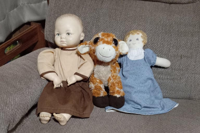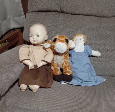 Then Grandma took a couple pictures from her pocket. "Look at these" she said, as she held them out for the children to see. "Do you remember the other day when Joy was here and Sally wanted me to take some pictures? I know you didn't much want to be surrounded by all their toys, Coco, but you went along with it to make Sally happy. That was kind of you."