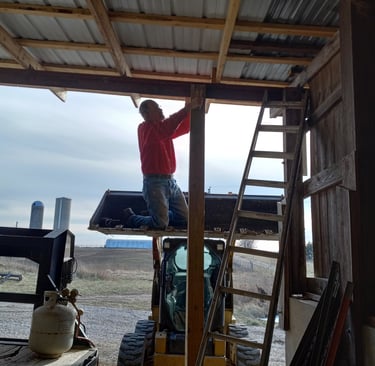 Coco was sure glad that the bus was almost to his house! What he had been hearing at school today had him pretty shook up inside. Confused thoughts were swirling in his mind and he really, really needed to talk to Grandpa about it. He felt the bus slow down and heard the squeaky brakes as they approached his driveway. He picked up his backpack, jumped off the bus, waved goodbye to the driver, and started toward the house. A sound made him look toward the shed. There was Grandpa, on top of a tractor, working on something on the roof! Oh, that's right, the storm a few nights ago had damaged the metal up there and Grandpa had been trying to figure out how to get it fixed.