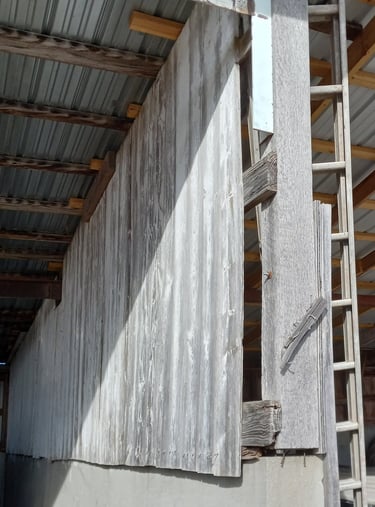 Do you remember, a while back, when the shed roof was torn off by a storm? Well, here is another part of that shed that was damaged around the same time.