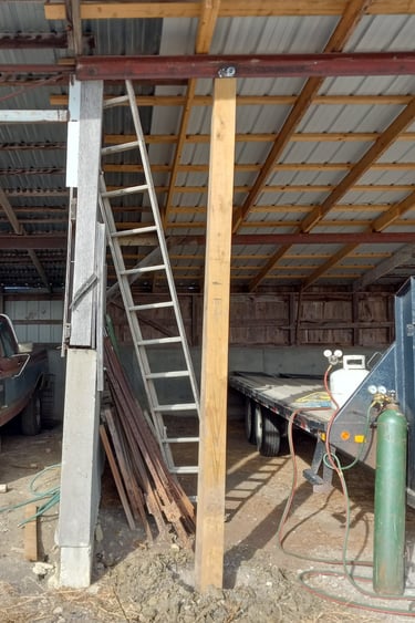 Now the roof is supported solidly again. Eventually, Grandpa will probably completely rebuild the wall since much of the wood is quite rotten and the nails are coming out. Below is a picture of the completed project.