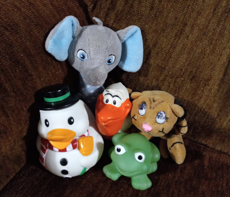 Sally's cousin, Joy, had come to spend the day with her. There were a lot of toys, and Sally had been playing with the plastic flowers and the alligator. She made the alligator hide in Coco's hat, and then it would jump out and try to eat the flowers. Joy had been watching for a little while and laughing, but pretty soon she got bored and picked up the pelican and started playing with it instead.